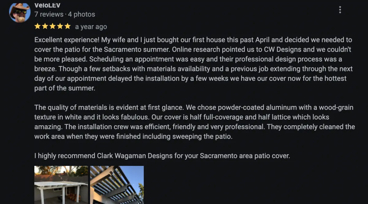 We are the leading patio cover installer in Sacramento for a reason...